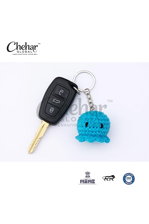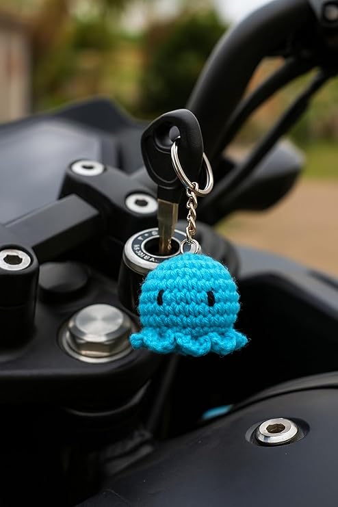 Handmade Blue Octopus Crochet Keychain is Unique, Lightweight and Durable. Handmade Blue Octopus Crochet Keychain Delightful Lovely Charms for Car Motorbike Bag Purse Keyrings Knitting Cotton Yarn Keychain Craft Unique Gift For Girls Women (Blue-Animal).