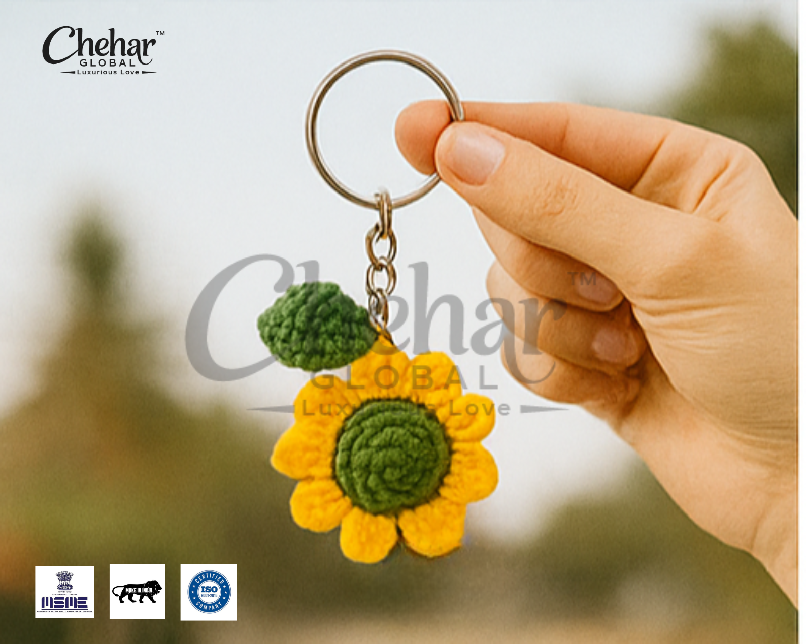 Handmade Crochet Sunflower Keychain Cute Bag Purse Keyrings Charm Lightweight Motorbike Car Unique Personalized Girlfriend Sister Gift Accessories.
